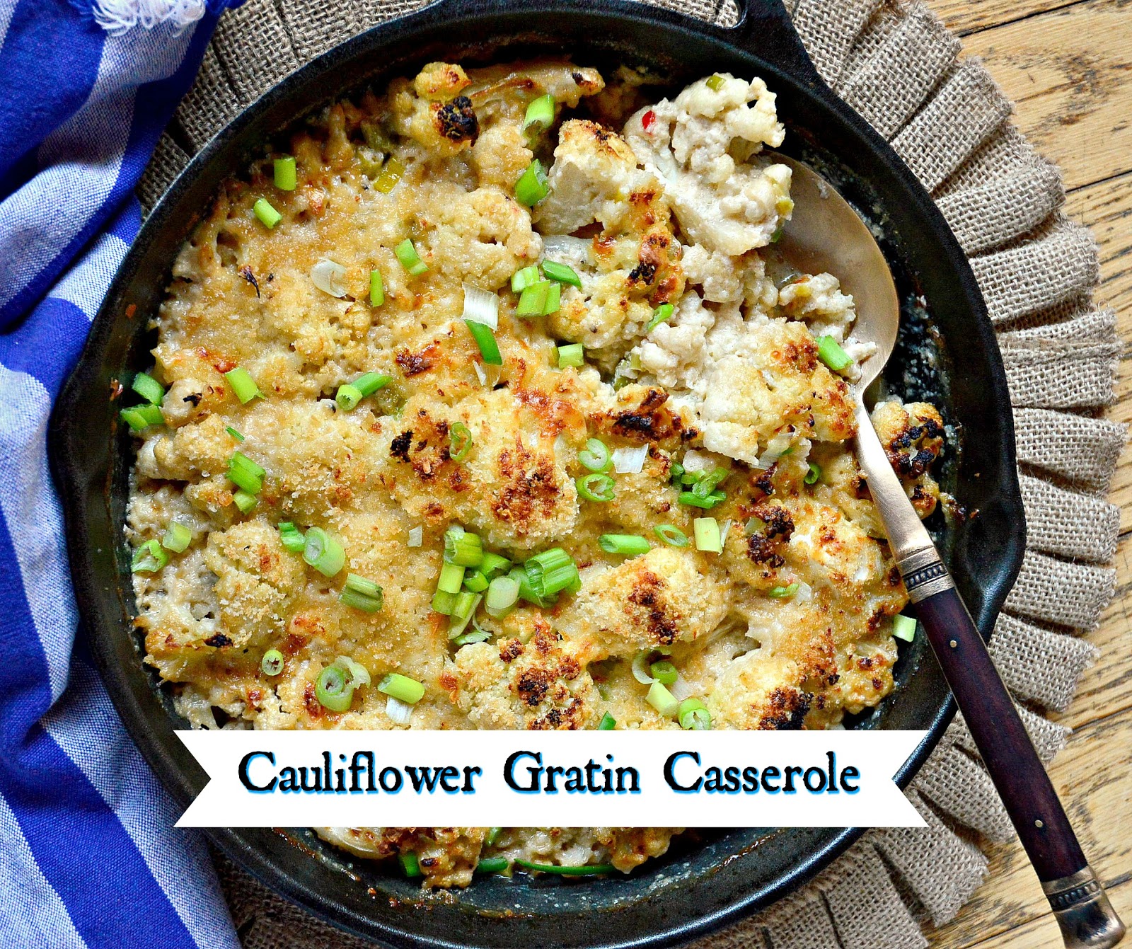 This Cauliflower Gratin Casserole has the right stuff. Made to be rich; this dish is filled with cheese and cream. Some might think of it as mac and cheese, except cauliflower replaces the macaroni. Reminds me of a steakhouse side dish-where often times you want the side dish more than the steak!