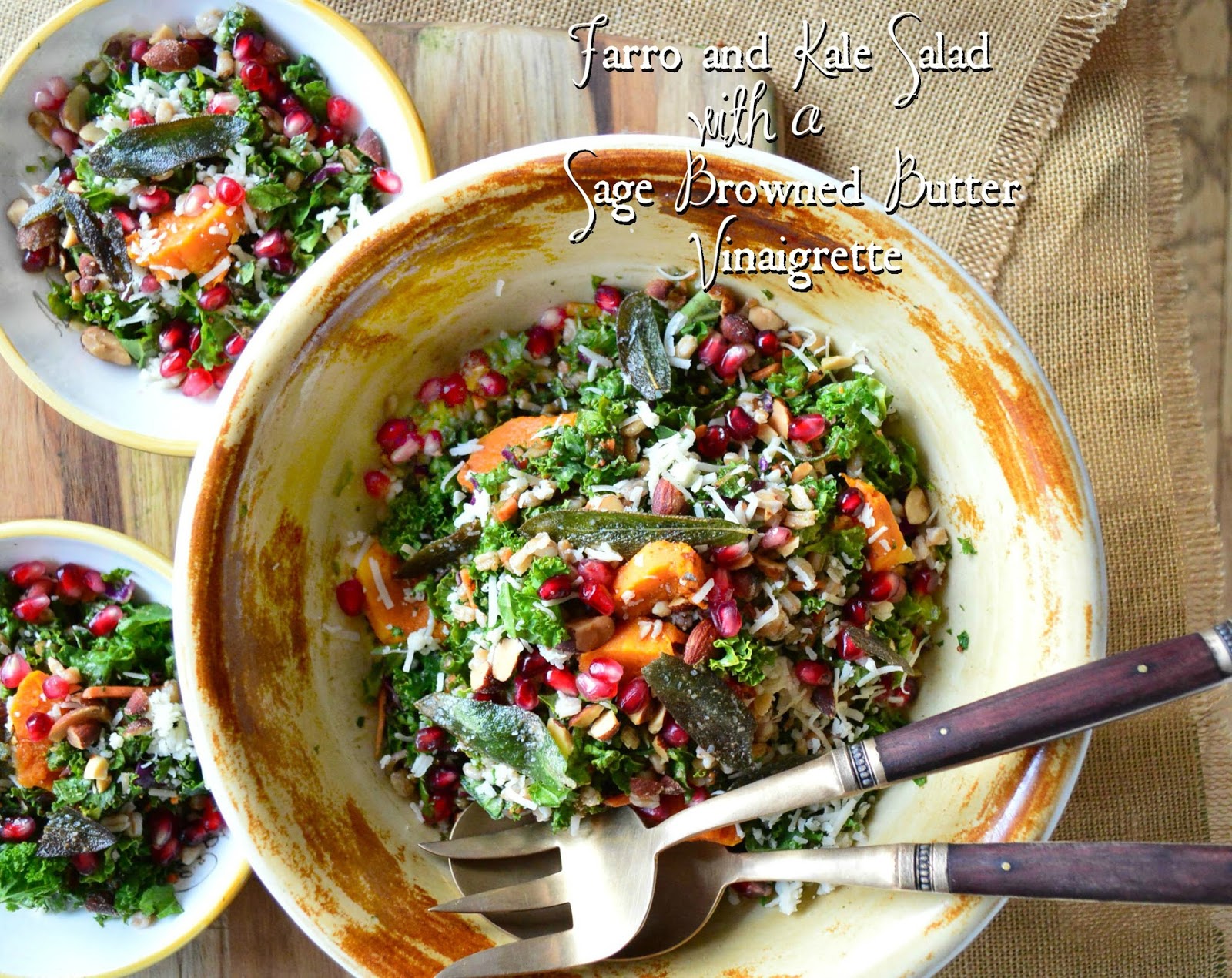 Farro Salad Recipe with Kale Salad and Sage Browned Butter Vinaigrette