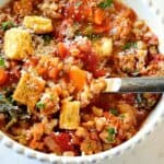 Farro soup with sausage was a hit! Loaded with flavor and very filling, this simple, satisfying hearty farro soup recipe was a winner!