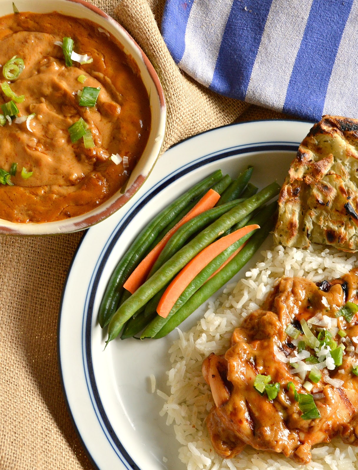 So many years ago before satay came and went-well I guess it is still here, but it isn't everywhere- I started making peanut sauce to go over grilled chicken. I served it with coconut rice and microwave pappadums and grilled pineapple at numerous summer dinner parties and most likely made key lime pie for dessert. Now I don't have numerous dinner parties, but back then people probably were getting tired of my peanut sauced chicken. I can tell you they loved it; and they thought it was so gourmet. Whatever that means.