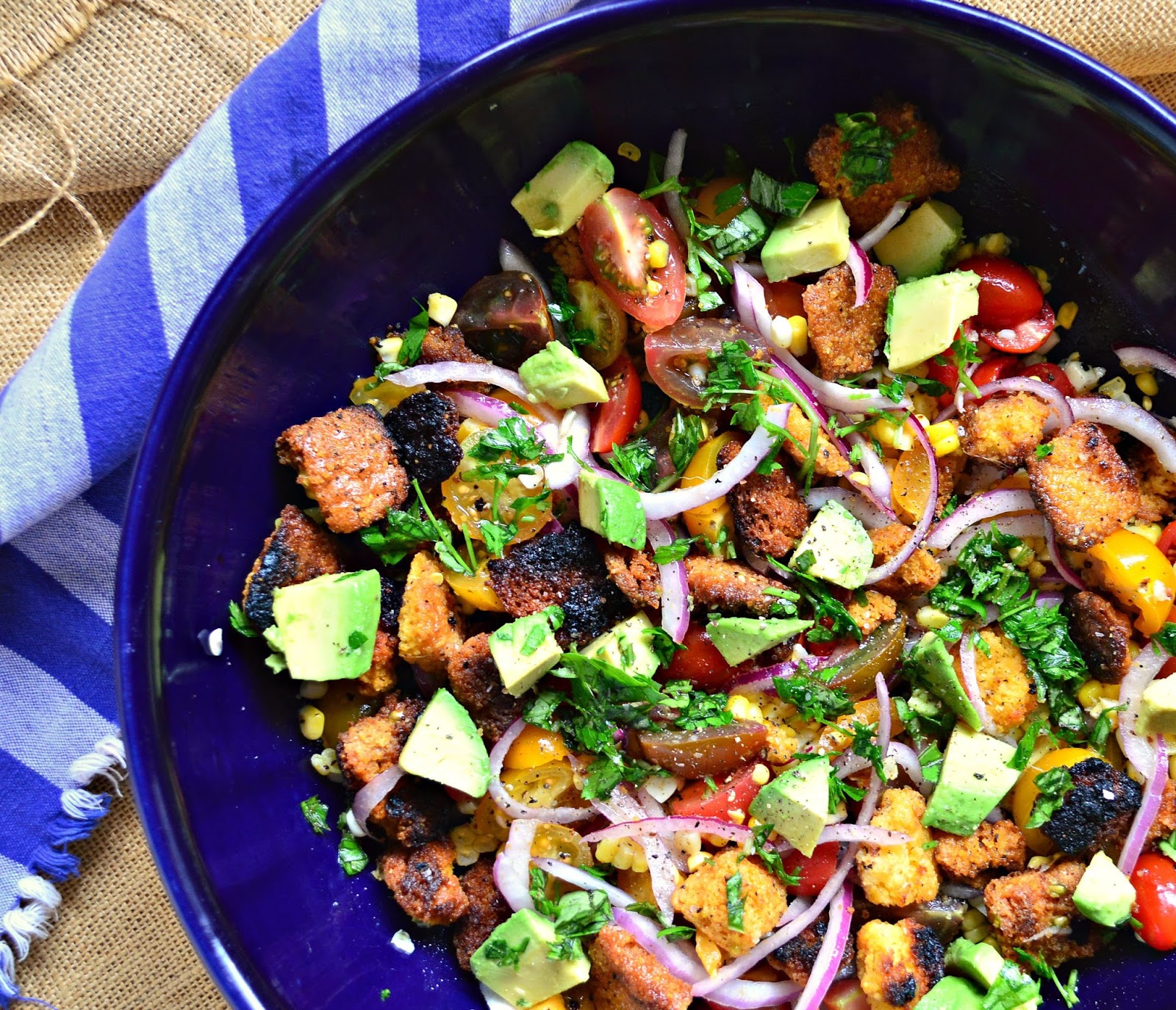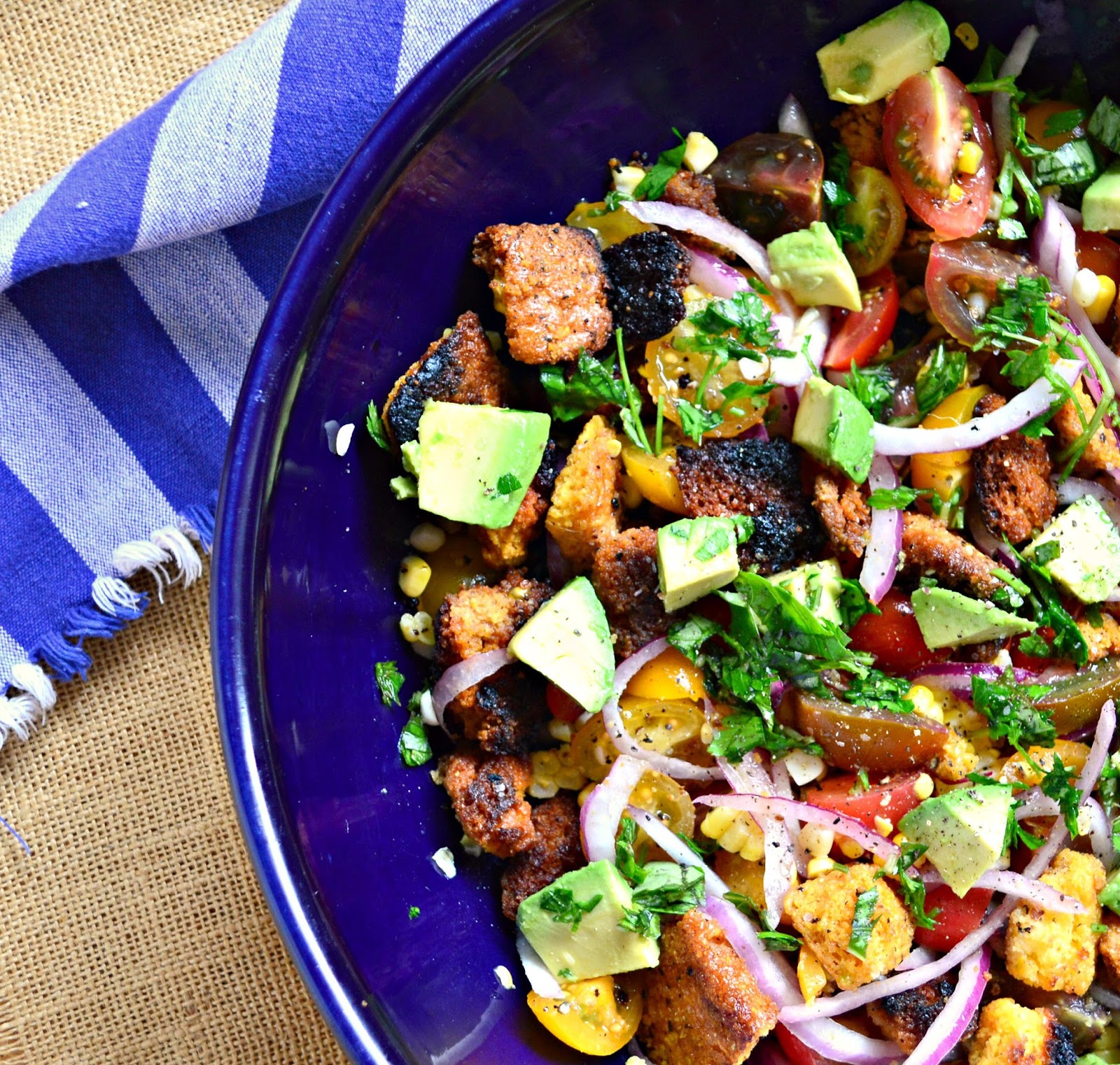 This is brilliant! I've never used anything but white bread for a panzanella. But this being a Southwestern-inspired salad and all, the cornbread is perfect. And toasted to boot!