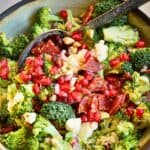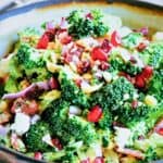 Broccoli Cranberry salad is a salad made for Fall. Even broccoli haters like this mildly sweet, crunchy salad. Mixed with dried cranberries and Marcona almonds; I also added some Soppressata sausage for extra spice!