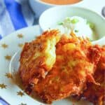 If you are planning on reheating this potato latkes recipe be sure to not fry until totally golden, because when you reheat them they will become more brown.