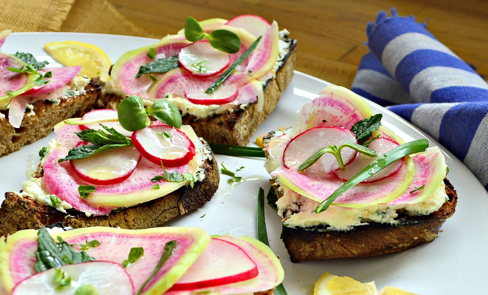 I only started sautéing breakfast radishes 2 years ago after reading a post about them. Using them raw in crostini is new to me but another great idea! Yet another reason to eagerly await the return of our farmers markets next month.