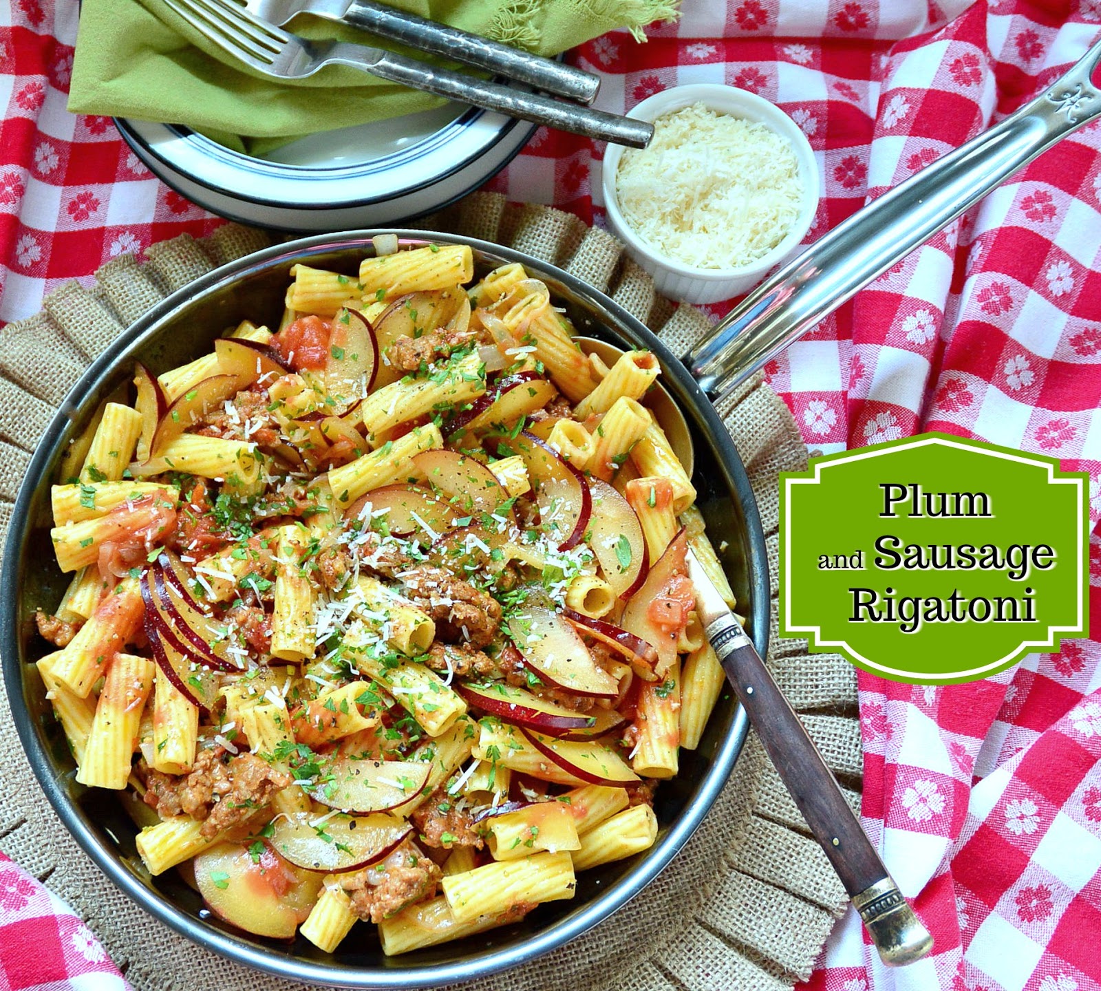 This sausage rigatoni with plums is a delicious and creative summer pasta.