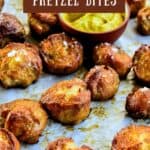 Amazing soft pretzel bites are easily made with pizza dough. Sprinkled with salt or cinnamon sugar, these pretzel nuggets are a favorite! In 30 minutes they are ready to be devoured.