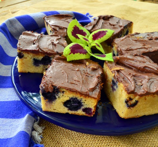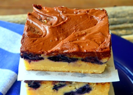 White Chocolate Blueberry Brownies with Dark Chocolate Frosting